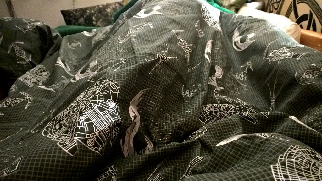 So here is the more detailed shot: All the xwings, tie-fighters, death stars and millenium falcons *squeals* so pretty! One is never too old for this...
